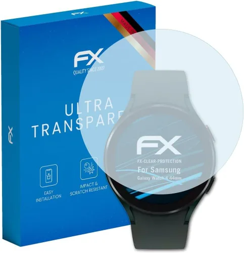 Película protectora FX-Clear: ultra transparente y con revestimiento duro, ajuste perfecto y compatible con Samsung Galaxy Watch 4 (1.732 in) Esta película de protección de pantalla transparente es casi invisible Con una dureza de lápiz de 6 H a 17.64 oz de presión de escritura, muy resistente a los arañazos - Película protectora de revestimiento duro extremadamente resistente a los arañazos, compatible con Samsung Galaxy Watch 4 (1.732 in) Los materiales sintéticos multicapa duraderos de la película proporcionan una protección mecánica duradera para pantallas contra todo tipo de daños. El protector de pantalla es excepcionalmente robusto, duradero y está diseñado para un uso continuo Accesorio@FoliX – Fabricado en Alemania *** Muy fácil de aplicar de la película protectora. Adhesión 100% sin burbujas a una pantalla limpia, la capa adhesiva especial de silicona expulsa el aire cuando se aplica la película, asegurando que se adhiere perfectamente a la pantalla