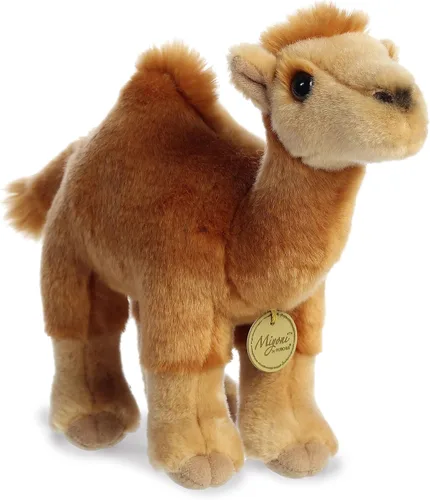Miyoni cuenta con tus animales de peluche favoritos, con un diseño tanto realista como adorable. Este dromedario es de color marrón arena con un pequeño mechón de pelo en la cabeza, joroba y cola.