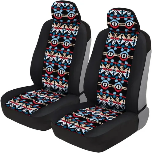 BDK - Fundas para asientos de automóvil con patrón azteca, juego de 2 fundas para asientos delanteros con estampado geométrico que incluye