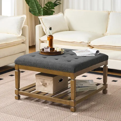 | Nombre del producto | Befurtori Mesa de centro otomana cuadrada grande, otomana tapizada de lino sólido con estante de madera maciza, mesa de centro copetuda para dormitorio, sala de estar, gris oscuro |