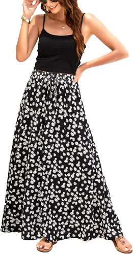 Bluetime - Falda larga para mujer con estampado de leopardo, maxifalda de chifón plisada con cintura alta elástica para el verano y la playa