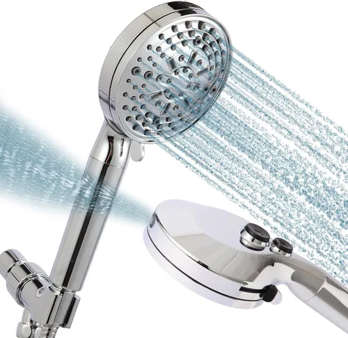 Tamaño de flujo de agua controlable: nuestro cabezal de ducha de mano viene con un tamaño de flujo de agua ajustable, lo que facilita cambiar entre diferentes modos y elegir el flujo de agua que más le convenga Purificación de la calidad del agua: la salud es lo más preciado. Nuestro cabezal de ducha tiene ocho capas de filtración. Puede eliminar eficazmente las impurezas y el cloro residual, los metales pesados (plomo, mercurio, níquel, cromo) y otras sustancias nocivas del agua. 11 cabezales de ducha ajustables: incluyendo masaje de pulso, pulverización suave, masaje de lluvia, niebla de lluvia, conveniente modo de gota de agua que ahorra agua, etc. Puede aportar diferentes experiencias a la piel de las personas y también elegir los modos apropiados para que las mascotas se bañen. Después, el cabello residual y las manchas en el baño se pueden limpiar utilizando el modo de agua de pistola rociadora Materiales de alta calidad: este cabezal de ducha de mano está hecho de material ABS de alta calidad, que es ligero, resistente al óxido y resistente a la decoloración. El panel de 4.8 pulgadas de ancho proporciona una experiencia de ducha cómoda. Fácil instalación en 5 minutos: no requiere fontanero. El cabezal de ducha de mano se fija al cabezal de ducha y es ligero y fácil de instalar. La rosca universal G1/2" se fija rápidamente a cualquier brazo de ducha estándar en minutos. Insistir en el mejor servicio para los consumidores. Si tienes alguna pregunta sobre nuestros productos, puedes ponerte en contacto con nosotros a través de Yaxa, te proporcionaremos el mejor servicio al cliente en 24 horas.