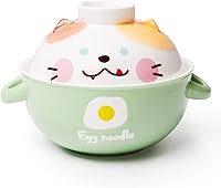 Tazón de cerámica para ramen con tapa, bonito cuenco de fideos ramen para sopa, Pho y pasta, apto para lavavajillas, ideal para el hogar, oficina,