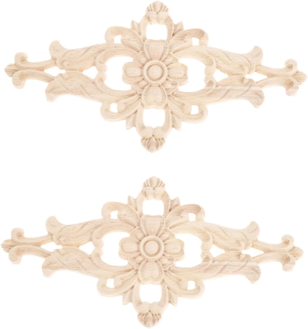 MUXSAM Apliques de madera tallados para muebles, 2 calcomanías de tallado en centro sin pintar para puerta, pared, techo, gabinete, tocador, espejo,
