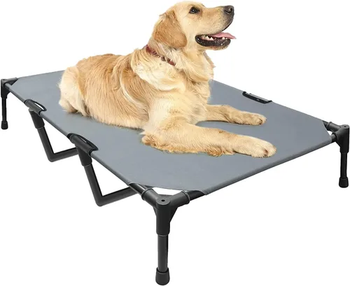 Mensajero para mimar al perro: cama elevada portátil para perro, levanta a tu amigo perrito de la hierba húmeda y fangosa para mantenerlo limpio y fresco. El diseño de malla permite que el aire fluya a través de la tela durante los calurosos meses de verano, lo que permite que tu perro sienta la brisa fresca. Diseñado para todas las estaciones: la cama elevada para perros está hecha de tela Oxford de alta calidad, que es muy transpirable y resistente al agua. Todas las telas Oxford están diseñadas para ser más firmes y no se rayan fácilmente por las uñas del perro. En invierno, solo necesitas añadir un cojín suave o manta para proporcionar una cama pequeña cómoda y cálida para tu amigo mascota. Puedes utilizar la lavadora para limpiar la funda de la cama del perro cuando la cama de tu perro tenga polvo y manchas. Es muy conveniente. Increíble capacidad de carga: nuestra cama para perro utiliza tubos de metal pintados de alta calidad como patas de apoyo para garantizar suficiente capacidad de carga y no se dobla ni colapsa. El tamaño XL incluso tiene dos tubos de acero adicionales, que pueden soportar un peso de no más de 140 libras. Nuestra cama plegable para perros está equipada con almohadillas de goma antideslizantes para evitar que el perro se caiga cuando el perro tiene prisa por irse a la cama, y reducir el ruido de la cama que se mueve en el suelo. Adecuado para más perros: el tamaño pequeño: 22 x 17 x 7 pulgadas para mascotas de hasta 80 libras; adecuado para un caniche de juguete típico adulto, Yorkie, Pomerania, etc. Tamaño mediano: 32 x 25 x 7 pulgadas para mascotas de hasta 112 libras; adecuado para un bulldog inglés adulto normal, samoyedo, etc. Tamaño grande: 42 x 30 x 7 pulgadas. Para mascotas de hasta 124 libras; adecuado para un pastor alemán adulto normal, Golden Retriever, Akita, etc. El tamaño XL: 49"x33"x9" para mascotas de hasta 140 libras. Fácil de montar: no se necesitan tornillos ni llaves. De acuerdo con nuestras instrucciones de instalación, la cama para perros se puede instalar directamente con el enchufe. Es fácil de desmontar y montar, por lo que es muy adecuado para interiores, exteriores, picnic, camping, entrenamiento o viajes para proporcionar un sueño de calidad para los perros. Puedes limpiarlo con una toalla húmeda, y nuestra tela se secará rápidamente. Si tienes alguna duda durante la instalación o uso, ponte en contacto con nosotros lo antes posible.