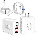 Bloque de cargador USB C, cargador de pared dinámico de 40 W con 60 W máximo, paquete de 2 enchufes plegables tipo C rápido con cable de carga USB C