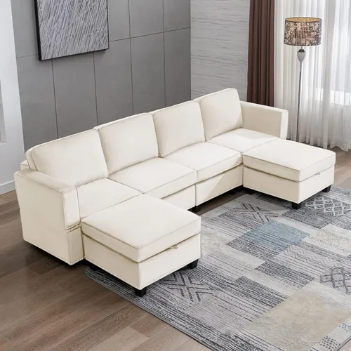 Dimensiones del producto 112"D x 60"W x 33,5"H pulgadas Color Beige Marca CECER Estilo Moderno Características especiales Almacenamiento Tipo Seccional Tipo de Tela de Tapicería Velvet Tipo de sala Sala de estar Forma Forma de L Estilo de brazo Cuadrado Patrón Solid Material del armazón Madera Talla 6 Seats with Storage Ottomans Se requiere ensamblado Sí Rango de edad (descripción) Adulto Altura del asiento 18,9 Pulgadas Dimensiones del producto 112 x 60 x 33,5 pulgadas Fabricante CECER ASIN B0BX3X85L4 Clasificación en los más vendidos de Amazon nº1,106,476 en Hogar y Cocina (Ver el Top 100 en Hogar y Cocina) nº1,528 en Sofás de Sala Producto en Tienda desde Febrero 28, 2023