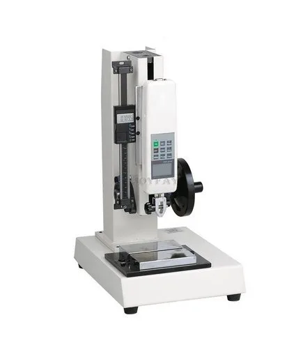 1000 N vertical lateral soporte de prueba con un medidor digital y un medidor de fuerza de empuje digital Nota: este precio es para el soporte de prueba, el medidor digital y el medidor digital de fuerza de empuje y empuje Parámetros técnicos: Carga máxima: 1000 N. Carrera: 7.087 in. Tamaño: 10.236 x 14.173 x 27.559 in. Características: La base del soporte de máquina es grande y estable, que es adecuada para pruebas en interiores en el escritorio. Es impulsado por el tornillo, y su desplazamiento de la cabeza del calibre es preciso, con la carga de la rueda de mano lateral, y el funcionamiento simple y estable. La plataforma móvil de la base que posee el diseño estándar puede realizar movimiento izquierdo, derecho, hacia adelante y hacia atrás, con sujeción cómoda y precisa. El soporte de máquina se puede instalar en la mesa (escritorio) para usar, con un marco de máquina más sólido. Está equipado con indicador digital, lo que le permite recoger los datos de trazo siempre que sea necesario.