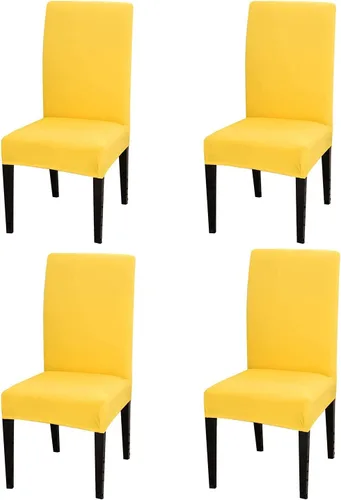 Chickwin Paquete de 4 fundas para sillas de comedor, color amarillo, elásticas Parsons, fundas para sillas de comedor, con respaldo alto, sin