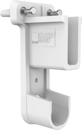 El soporte de pared lateral ClosetMaid para estanterías ClosetMaid SuperSlide se monta fácilmente en una pared para sostener el extremo de un estante SuperSlide. El soporte también sostiene una barra colgante de armario en un solo paso. El soporte de pared soporta el borde frontal de la estantería de alambre y la barra de colgar donde se encuentran con la pared lateral.