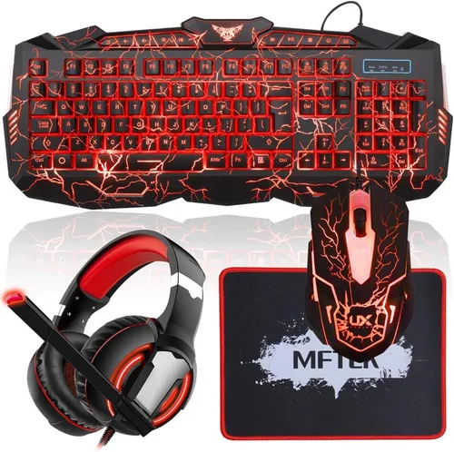 【Combo de teclado y auriculares para juegos】: hecho de material ABS de alta calidad, tapas de teclas en forma de U, cómodo teclado para juegos. Ratón de juego de 7 colores intercambiables automáticos, auriculares estéreo de alta calidad con micrófono. Kit de juego todo en uno solo para tu gran comodidad. Función de retroiluminación del teclado: nuestro diseño de teclado iluminado con 3 colores LED y 3 modos de respiración, puedes ajustar fácilmente el modo retroiluminado. FN+SL cambia 3 colores (rojo, azul, morado); Fn+Up/Dn ajusta el brillo de la luz; modo de cambio automático de 3 colores; Fn+PS: modo de cambio automático de color. 【Auriculares para juegos con micrófono】: auriculares retroiluminados con LED rojo, controlador de 1.575 in y micrófono de alta definición que te dará la mejor calidad de sonido, fuerte aislamiento de ruido, diseño de diadema retráctil con almohadillas envueltas en cuero sintético que te permiten jugar durante horas con total comodidad. Ratón de diseño ergonómico: estos ratones para juegos retroiluminados LED pueden adaptarse cómodamente a tu mano, DPI: 600/1000/1600; el color (morado, amarillo, rosa, azul, verde, rosa) se cambiará automáticamente y no se mantendrá en un solo color. Alfombrilla de mouse grande para juegos: hecha de tela de fibra superfina que garantiza un movimiento suave y preciso. La parte inferior de la alfombrilla para mouse está hecha de goma, que se puede fijar firmemente en el escritorio. Los bordes cosidos evitan daños y rizos. Tamaño de la alfombrilla para mouse: 11.8 x 9.4 pulgadas.