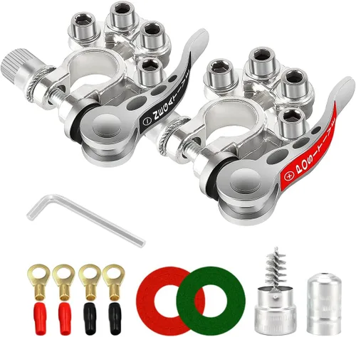 【Dimensión】: Para cables de diámetros de 5.2 a 7.4 mm (calibre AWG 1 - 4) o sección de 16 a 35 mm. Tamaño mínimo del cable: 16 mm (5/8 pulg.). Abrazadera máxima de alambre: 9.5mm/0.37in, Abrazadera mínima de alambre: 6.5mm/0.25in. 【Terminal de batería de 4 vías】: El conector de terminal de batería SAE tiene 4 terminales para conexiones de cable. Múltiples puntos de conexión garantizan conexiones individuales buenas y seguras en lugar de apretar todos los cables juntos en un punto. Calidad superior: el conector del terminal de la batería está hecho de cobre estañado, que es resistente a la corrosión y conduce bien, reduciendo la distorsión del voltaje y la pérdida de transmisión. El proceso de fabricación cuidadoso puede hacer que nuestros productos le acompañen durante más tiempo. 【Fácil de usar】: Los conectores de poste de batería están marcados con terminales positivos (rojo) y negativos (negro) para una fácil identificación. También le proporcionamos una llave Allen para una fácil instalación. La batería se puede conectar al poste presionando la palanca, por lo que no se requieren herramientas. 【Amplia aplicación】: Estos conectores de terminal de batería son adecuados para baterías cilíndricas de auto SAE/JIS A-post, que se pueden utilizar para coche, furgoneta, caravana, autocaravana, batería de camión, audio de auto, etc. Si tienes alguna pregunta, no dudes en ponerte en contacto con nosotros, te responderemos lo antes posible.