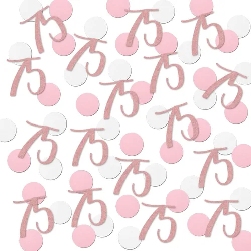 Confeti de oro rosa 75, confeti número 75 con purpurina, 200 piezas de decoración de mesa de fiesta de aniversario