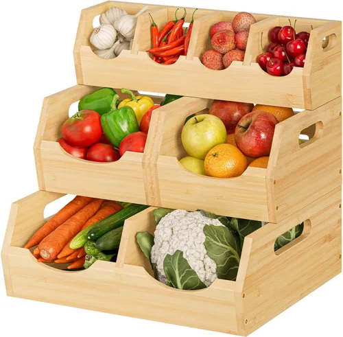 Pregunta sugerida sobre Contenedores de Almacenamiento de Despensa de Bambú de 3 Niveles Mejorados - Contenedor Apilable para Papas y Cebollas, Cestas de Almacenamiento ¿Qué incluye exactamente este set?
