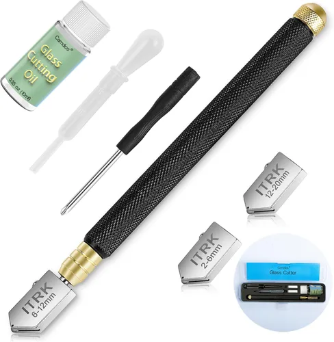 Corte de vidrio mejorado; ¿Te preocupa el corte de vidrio irregular? Ahora nuestro producto puede resolver este problema por completo, el paquete incluye un cortador de vidrio de carburo premium y aceite de corte de vidrio premium, corte afilado y más suave. Corte garantizado de precisión absoluta para garantizar un funcionamiento suave. Fácil de usar: cuando utilices cortadores de vidrio, mantén el mango y el vidrio en un ángulo de 45 grados, siempre marca de borde a borde. Nuestra herramienta de corte de vidrio tiene un mango antideslizante de aleación duradera, reduce la fatiga de la muñeca. Cuando se aplica presión, el sistema automático de dispensación de aceite mantiene la rueda lubricada cada vez que cortas, haciendo que el cabezal de corte sea más fluido y afilado. Por supuesto, te proporcionamos aceites profesionales para cortar vidrio para tu comodidad. Amplia aplicación: la herramienta de corte de vidrio es adecuada para diferentes tipos de vidrio; es el cortador de vidrio ideal para espejos, bricolaje, mosaico, azulejos, corte de vidrios y trabajos de corte doméstico. Todas las herramientas de corte de vidrio; 1 × aceite profesional para cortador de vidrio, 1 × mango de aleación, 1 × cuentagotas de aceite, 1 × destornillador, 3 × cabezal de corte reemplazable (2-6 mm, 6-12 mm, 12-20 mm), fácil de cambiar la hoja de corte para cortar diferentes grosores de vidrio. ¡Sin preocupaciones! Somos las marcas genuinas de herramientas de corte de vidrio con calidad garantizada. Si no está satisfecho con lo que recibe, háganoslo saber. Estamos comprometidos a satisfacer las necesidades de los usuarios y mejorar continuamente nuestros productos.