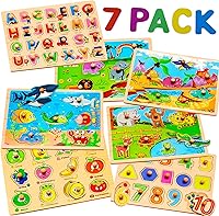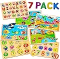 Paquete de 7 rompecabezas de madera para niños de 2, 3, 4, 5 años, 7 coloridos rompecabezas de madera gruesa para niños de 2 a 5 años, números en