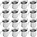 KEILEOHO Mini jarra de acero inoxidable de 16 piezas, 3 onzas, crema de campana de acero inoxidable, crema en forma de campana con asa, jarra de