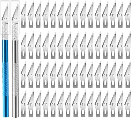 Cuchillo Exacto, 2 cuchillos Exacto con 60 cuchillas Exacto #11, cuchillo de manualidades, cuchillo de pasatiempo, juego de cuchillos Exacto para