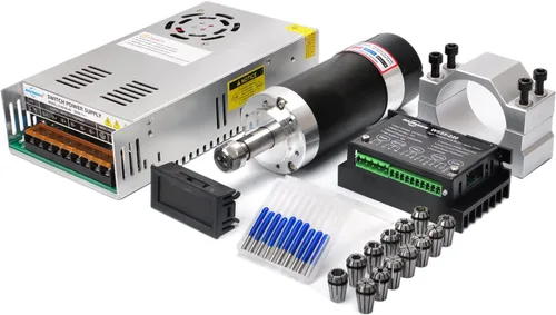 Husillo: 3 cables-sin escobillas, 500w, ER11, 48v DC, 0-12000RPM, φ 2-3/16" Control Mach3: Soporte Mach3 motor de control después de la actualización del controlador, manual de referencia para cableado Lectura de velocidad: viene con la pantalla LCD, velocidad del husillo de lectura en tiempo real. Silencioso y eficiente: funcionamiento suave, gira rápido y tiene una vibración mínima. Rentable: Sin cepillo, sin mantenimiento, elimina el polvo cuando sea necesario.