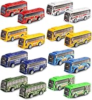 Juego de 16 piezas de vehículos de autobús urbano con tracción trasera, mini autos para niños pequeños, vehículos de carreras impulsados por