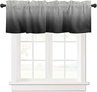 Cortina de cenefa para cocina, cenefa de ventana color negro y gris degradado para sala de estar, cenefas con bolsillo para barra para decoración de