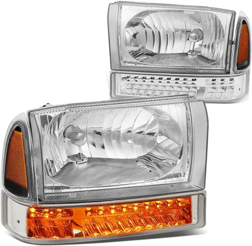 Un faro (faro) es una lámpara conectada a la parte delantera de un vehículo para iluminar la carretera por delante. El rendimiento de los faros ha mejorado constantemente a lo largo de la era del automóvil, impulsado por la gran disparidad entre las muertes de tráfico diurno y nocturno. Los faros delanteros son uno de los componentes más importantes de tu vehículo, te permiten ver claramente la carretera frente a ti durante la noche y en cualquier mal tiempo que pueda surgir. Nuestros faros mejoran la cara de tu vehículo con un estilo claro y un rango extremo. El paquete incluye: 1 par de faros (izquierda y derecha) 1 par de luces intermitentes (izquierda y derecha). Este artículo se adapta a: 99-04 Ford F-250 SD, f-350 sd00-04 ford excursion no es compatible con modelos ligeros o modelos con faros de haz sellado.