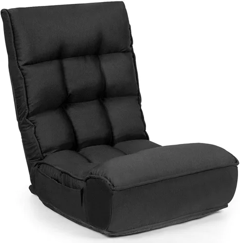 DORTALA Silla de Piso Plegable para Adultos, Silla Gaming de Espuma con Memoria con Soporte Ajustable para Cabeza y Espalda de 5 Posiciones, Asiento