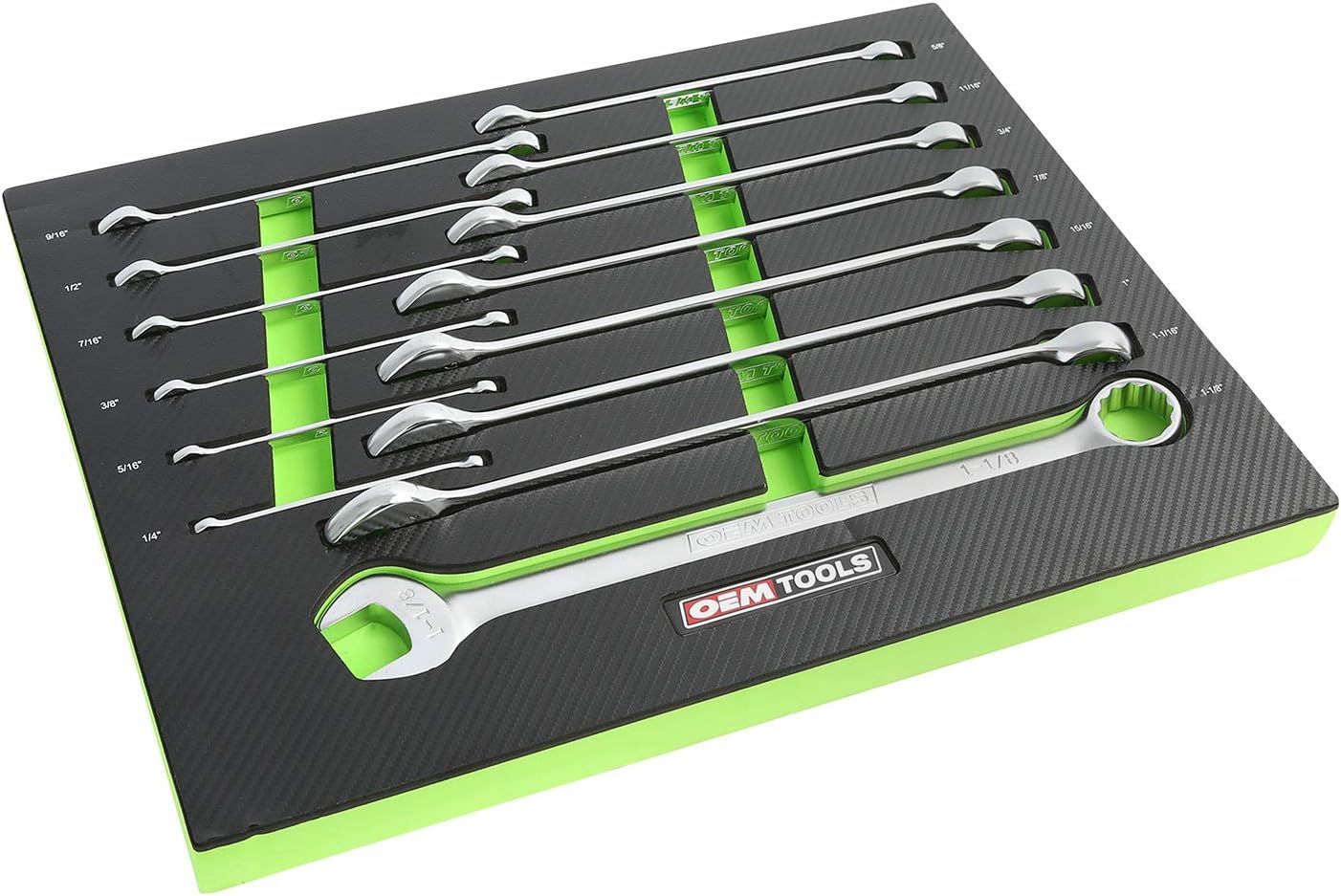 OEMTOOLS 23993 Juego de llaves combinadas de 14 piezas, juego de llaves SAE de 1/4"-1-1/8", llaves Posi Grip, extremo abierto de acero tratado