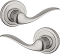 Manija de puerta de paso interior Kwikset Tustin, palanca para puertas de armario y pasillo, manija reversible sin bloqueo, níquel satinado, con