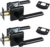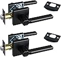 Paquete de 2 manijas de puerta con palanca de privacidad para dormitorio y baño, manija de puerta interior sin llave, manija de puerta cuadrada