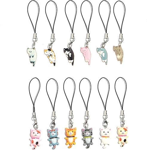 Fácil de instalar: solo tienes que pasar el dije kawaii para teléfono a través de los agujeros de amarre en la funda del teléfono con agujeros, correas de hombro de mochila, agujeros de cremallera, llaveros y más, lo que es cómodo de usar Opción de regalo ideal: el divertido y lindo gato de la correa del teléfono se ve en una variedad de colores complementará tus atuendos, es muy fácil atraer la atención de los demás y te hará más atractiva