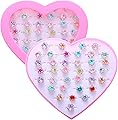 36 piezas de anillos de gemas de strass para niñas pequeñas, ajustables, estilo de color aleatorio, anillos de diamante para jugar para niños en
