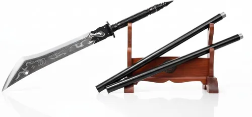 Especificaciones del artículo: Material de la hoja: acero de alto carbono, patrón grabado al agua fuerte superficial; Tipo de espada: hecha a mano. Peso del paquete: 10.1 lbs; Longitud: 78.7 in, longitud de cabeza de 19 pulgadas. Varilla: acero inoxidable. Vaina: cuero negro. Condición: a estrenar. Origen: Longquan Zhejiang China; Accesorios: bolsa de espada de algodón. Sin soporte de espada. Nota: 1. Cada espada, resultado de una meticulosa artesanía, puede mostrar ligeras variaciones en longitud, peso y color, un testimonio de su singularidad. 2. Como fabricantes, pueden surgir pequeñas discrepancias debido a las variaciones de montaje. 3. Si necesita una afiladura específica de la hoja, le recomendamos que se comunique con nosotros para obtener una aclaración antes de realizar su compra. Historia de la marca LOONGSWORD: En LOONGSWORD, nos dedicamos al arte de la fabricación de espadas, combinando la artesanía tradicional con la experiencia moderna. Cada espada está meticulosamente elaborada por maestros artesanos, llevando adelante el legado de las famosas habilidades de forja de espadas de Longquan, reconocidas como el patrimonio cultural inmaterial de China. Inspirado en el dragón mítico, que simboliza el poder y la fuerza en la cultura china, LOONGSWORD encarna la búsqueda de la excelencia y la esencia de las tradiciones antiguas. Abraza el espíritu del dragón y empuña una PALABRA DE LOONG con orgullo, sosteniendo un pedazo de historia y artesanía en tus manos. Embárcate en un viaje legendario con el arte de LOONGSWORD.