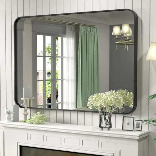 ODDSAN Espejo de baño con marco negro mate de 40 x 32 pulgadas, modernos espejos rectangulares de metal para pared de tocador, esquinas redondeadas,