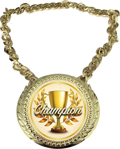 Nuestras cadenas de campeón de oro brillante son grandes, llamativas, únicas y ofrecen el factor WOW de una manera inconfundible. Si estás buscando una forma única de celebrar tu próximo evento, o reconocer a un competidor especial, este producto definitivamente llamará la atención de todos y será el tema de conversación durante años Esta cadena Champ está hecha de un plástico rígido de alta calidad. La placa central inferior mide 6 x 5-1/4 pulgadas y viene con una cadena de color dorado brillante de 7/8 x 34 pulgadas de largo. La imagen central a todo color mide 4-1/2 pulgadas. Este material de plástico rígido significa que es más ligero, por lo que es más fácil de llevar y más ligero en la cartera. Este premio también incluye una bolsa de presentación forrada de satén negro. NECESITA UNA PERSONALIZADA Logo Versión de este artículo..? Busca nuestras CADENAS CHAMP personalizadas en nuestra tienda de Yaxa haciendo clic en el enlace Blue EXPRESS MEDALS arriba. ¿Necesita una Medalla de Premio Campeón diferente, placa, trofeo, anillo u otro premio o todavía tiene preguntas..? Simplemente haz clic en el enlace de Blue Express Medals arriba para visitar nuestra tienda de Yaxa