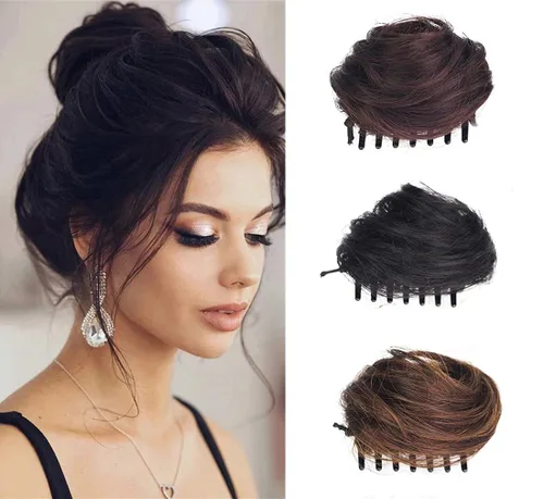 Material del moño de pelo: fibra sintética resistente al calor. Tamaño pequeño: 2.8 in x 2.2 in x 1.8 in, aproximadamente 3 pulgadas x 2 pulgadas x 2 pulgadas. Función: ayuda a hacer moño y cambiar el estilo de cabello. [Nota] El color marrón oscuro tiene un aspecto rojizo.