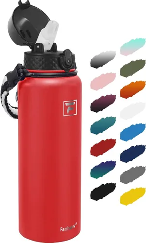 Fanhaw Botella de agua aislada de acero inoxidable de 40 onzas con tapa con popote, botella deportiva extragrande a prueba de fugas para hombres y