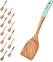 AIUHI Espátula de madera de alta calidad, espátula de madera de teca natural para cocinar, espátula grande para wok de acabado liso, espátula