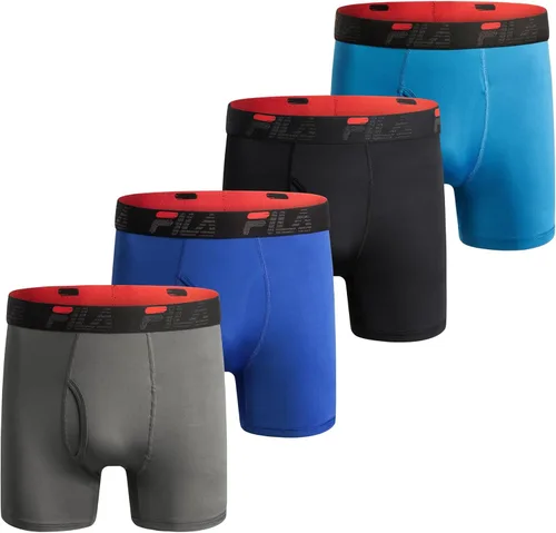 Fila Calzoncillos tipo bóxer para hombre de 6 pulgadas con bragueta frontal, 90% poliéster, 10% elastano, paquete de 4