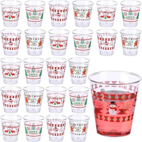 Pregunta sugerida sobre Funtery 24 Piezas Vasos de Chupito de Plástico con Diseño de Suéter Feo de Navidad 1.7 oz Vasos de Chupito Navideños Mini Desechables a Granel Árbol ¿Qué incluye exactamente este set?