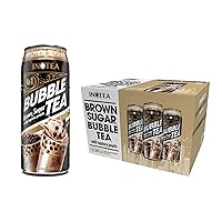 Paquete de 12 té de burbujas INOTEA sabor a azúcar moreno. Listo para beber en una lata (16.6 onzas). Té de leche negra con Boba. (azúcar marrón)