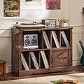 Large Record Player Stand with Vinyl Storage Up to 450 Albums, 39 Inch Farmhouse Brown Walnut Storage Cabinet with Barn Doors, Wood Vintage