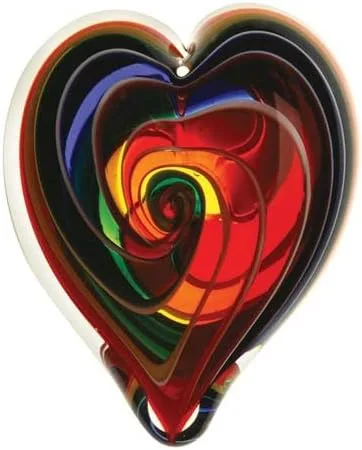 El amor está en nuestros corazones con estos símbolos dicroicos ardientes de afecto. Cada pieza hecha a mano está hecha con cuidadosa atención al color y los detalles para una obra de arte verdaderamente única. Una adición encantadora a cualquier colección de vidrio. Cada pieza, hecha a mano, recibe atención individual, ya que está cuidadosamente elaborada en la forma final. El proceso en sí es casi tan sorprendente como el producto final. El pisapapapeles de corazones de fuego incluye cenizas de la erupción del Monte St. Helens en 1980. Hecho a mano en los Estados Unidos: aproximadamente 3.5 pulgadas de largo.