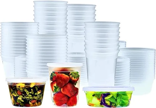 Los recipientes de almacenamiento para congelador de alimentos Deli con tapas son reutilizables, aptos para microondas, sin BPA, aptos para lavavajillas. Los recipientes de plástico desechables con tapas mantienen los alimentos, salsa, su sabroso, delicioso y sabroso ¿Enfermo y cansado de los envases de plástico de cuarto de galón de calidad barata con tapAbastécete de estos recipientes de plástico para congelador con tapas y haz que tu comida se almacene en el recipiente de preparación de comidas fácilmente, y se mantenga fresca ¿Pensando en los restos de comida? ¿Preparar comidas con anticipación? Con este paquete combinado de 32 oz. Recipientes de sopa con tapas aptos para congelador y recipientes de plástico de 16 onzas con tapas, tu comida se mantendrá fresca y deliciosa El paquete combinado de 60 viene con 20 unidades de 32 onzas. Recipientes para congelador para sopa o ensaladas grandes, y 20 8 onzas. & 20 recipientes de plástico de 16 onzas con tapa para ensaladas o frutas más pequeñas, y 60 tapas que se pueden utilizar para ambos tamaños Tamaño: 32 onzas. Las dimensiones de los recipientes para congelador de sopa son de 5.5 pulgadas de alto y 4.5 pulgadas de diámetro superior. Y el 16 oz. Los recipientes de pinta con tapas. Las dimensiones son de 3 pulgadas de alto y 4.5 pulgadas de diámetro superior