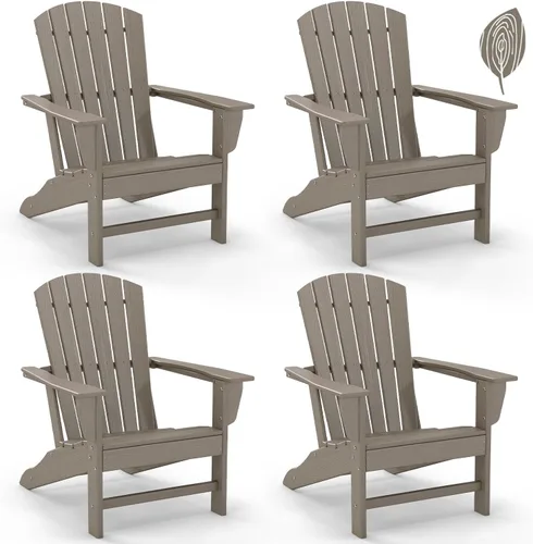GREENVINES Juego de 4 sillas Adirondack | Plástico HDPE de grano de madera | Silla de gran tamaño para hoguera | Para todo tipo de clima | Marrón