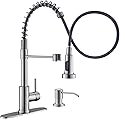 GIMILI - Grifo de cocina con dispensador de jabón, llave de fregadero de cocina comercial de una sola manija con resorte, níquel cepillado,