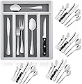 E-far Juego de cubiertos de 24 piezas con bandeja organizadora y cuchillos para carne, cubiertos de acero inoxidable para 4, utensilios básicos de