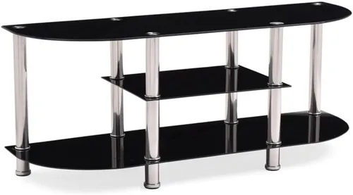 Se adapta a la mayoría de televisores de pantalla plana de hasta 65 pulgadas. 3 estantes abiertos para un amplio almacenamiento Atractivos cilindros cromados soportan los estantes Versátil y multifuncional en cualquier habitación de tu hogar Diseño contemporáneo perfecto para decoraciones modernas y de transición Componentes incluidos: hardware