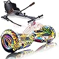 SIMATE Aeropatineta con combinación de accesorios de asiento, 6.5 pulgadas, autoequilibrante, con altavoces Bluetooth y luces LED para niños,