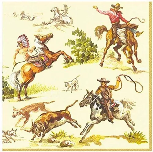 Ideal Home Range - 20 servilletas de papel Boston International de 3 capas, color crema salvaje oeste, 5 x 5 pulgadas